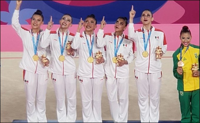 Karen Villanueva, Ana Galindo, Mildred Maldonado, Adriana Hernández y Britany Sainz, en equipo de gimnasia rítmica, y Yahel Castillo y Juan Celaya, en sincronizados de trampolín de tres metros en clavados, dieron las medallas 18 y 19, respectivamente, en la justa deportiva de América.