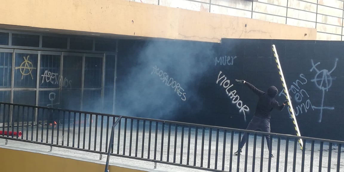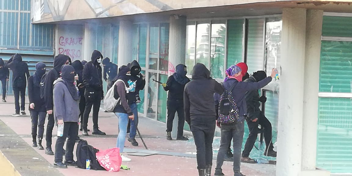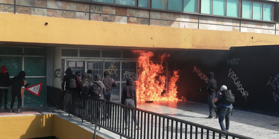 Después de que el contingente contra el acoso, proveniente de FES Cuatitlan, se retirara del lugar, múltiples personas llegaron a la plancha frente al edificio de Rectoría donde con palos, piedras y bombas molotov rompieron los vidrios del lugar, exigiendo la renuncia del nuevamente rector Enrique Graue Wiechers y en contra del acoso a las alumnas pertenecientes a la UNAM.