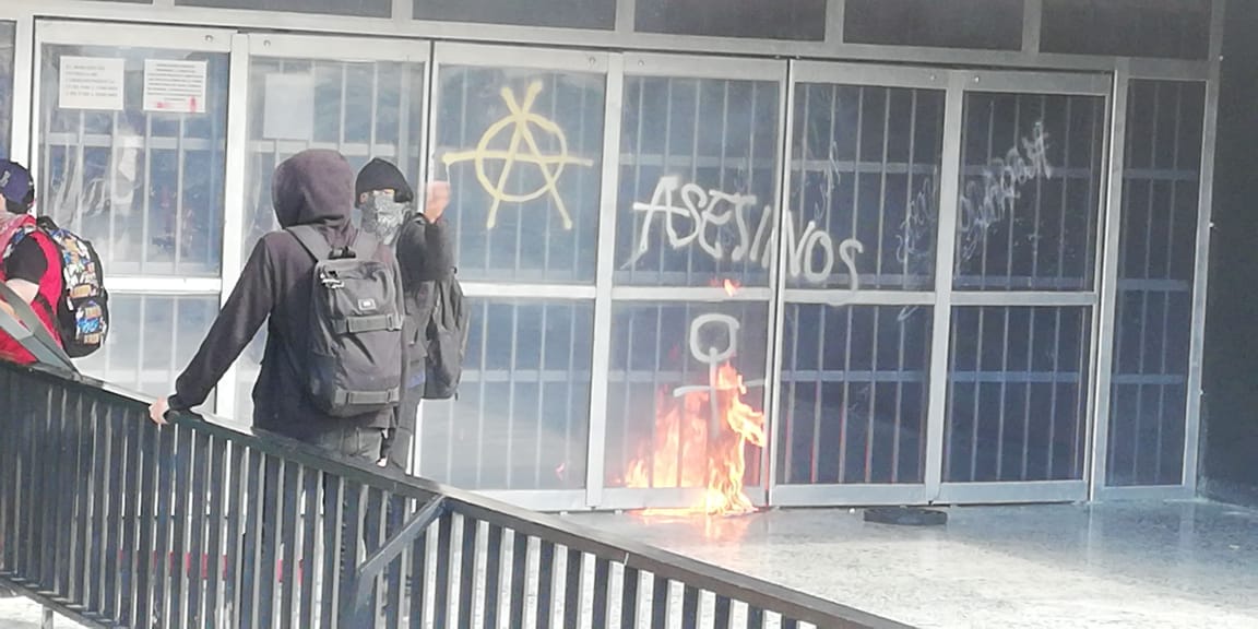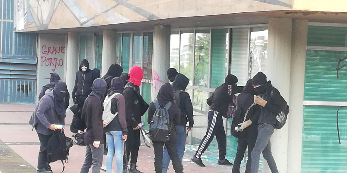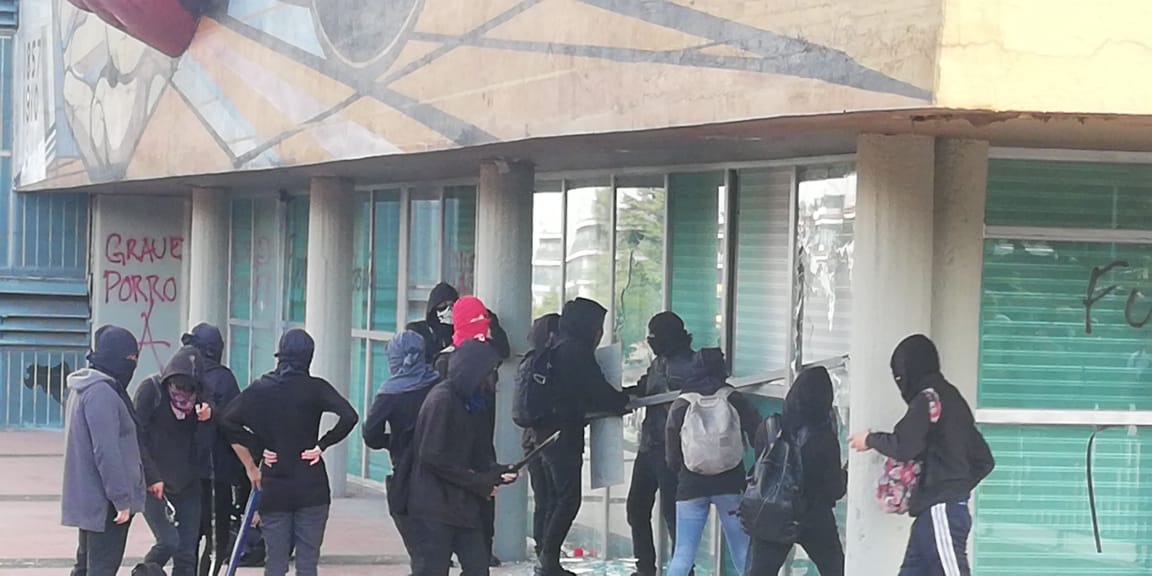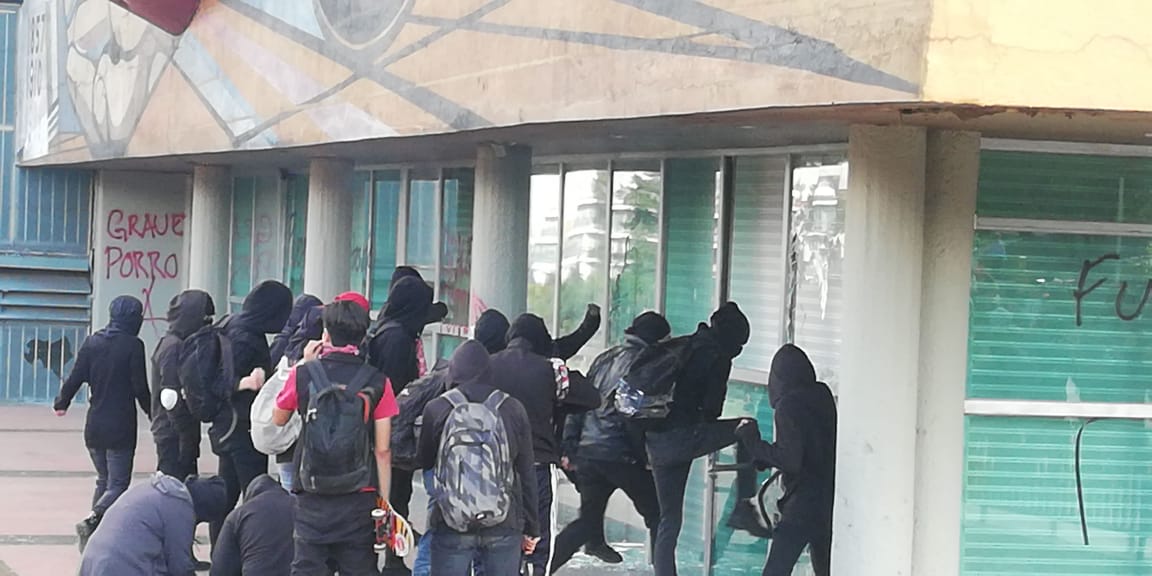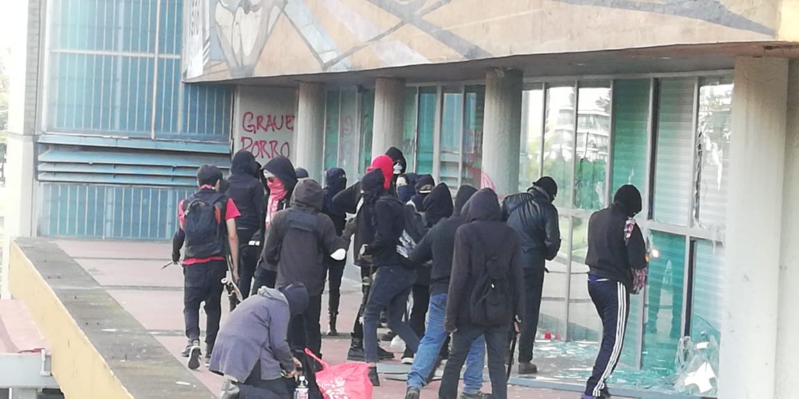 Hace unos momentos, grupos de choque provenientes presuntamente desde la Facultad de Ciencias políticas y sociales y de la Facultad de Filosofía arribaron al edificio de Rectoría en Ciudad universitaria donde comenzaron a vandalizar el edificio.
