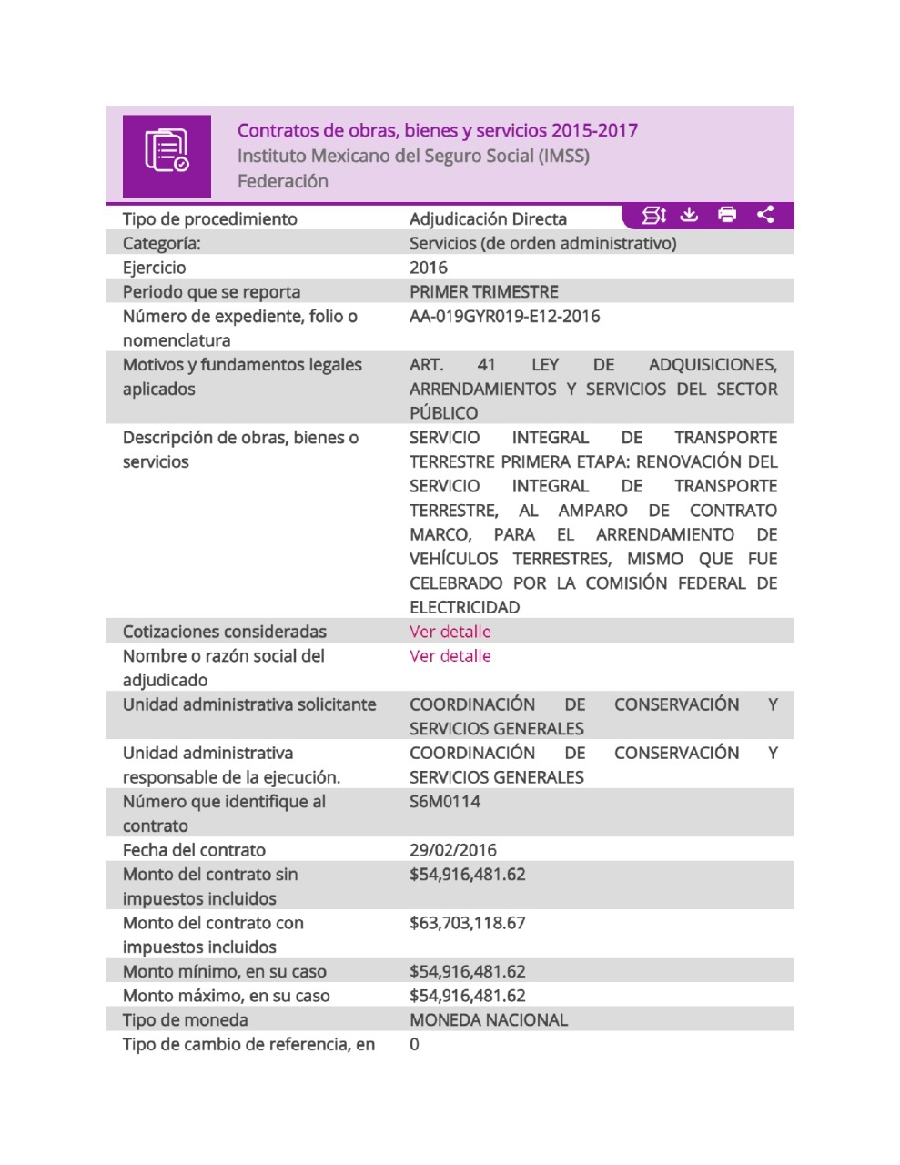 Sin embargo, no fue el único, obtuvo más contratos, entre ellos el de la Agencia de Servicios a la Comercialización y Desarrollo de Mercados Agropecuarios (ASERCA) en 2018 de 11,721,393.77, entre otros varios; el del Instituto Nacional de Antropología e Historia (INAH) en 2019 con adjudicación directa; el de Conade en 2015 y el del IMER, entre otros.
