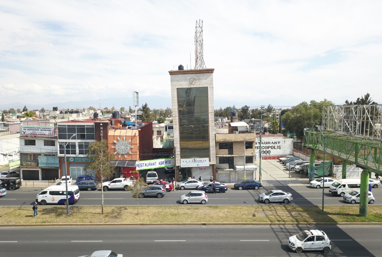 El edificio se localiza sobre la avenida Carlos Hank González (Central), en la colonia Melchor Múzquiz. Fue reportado por ciudadanos preocupados por el riesgo que representa.