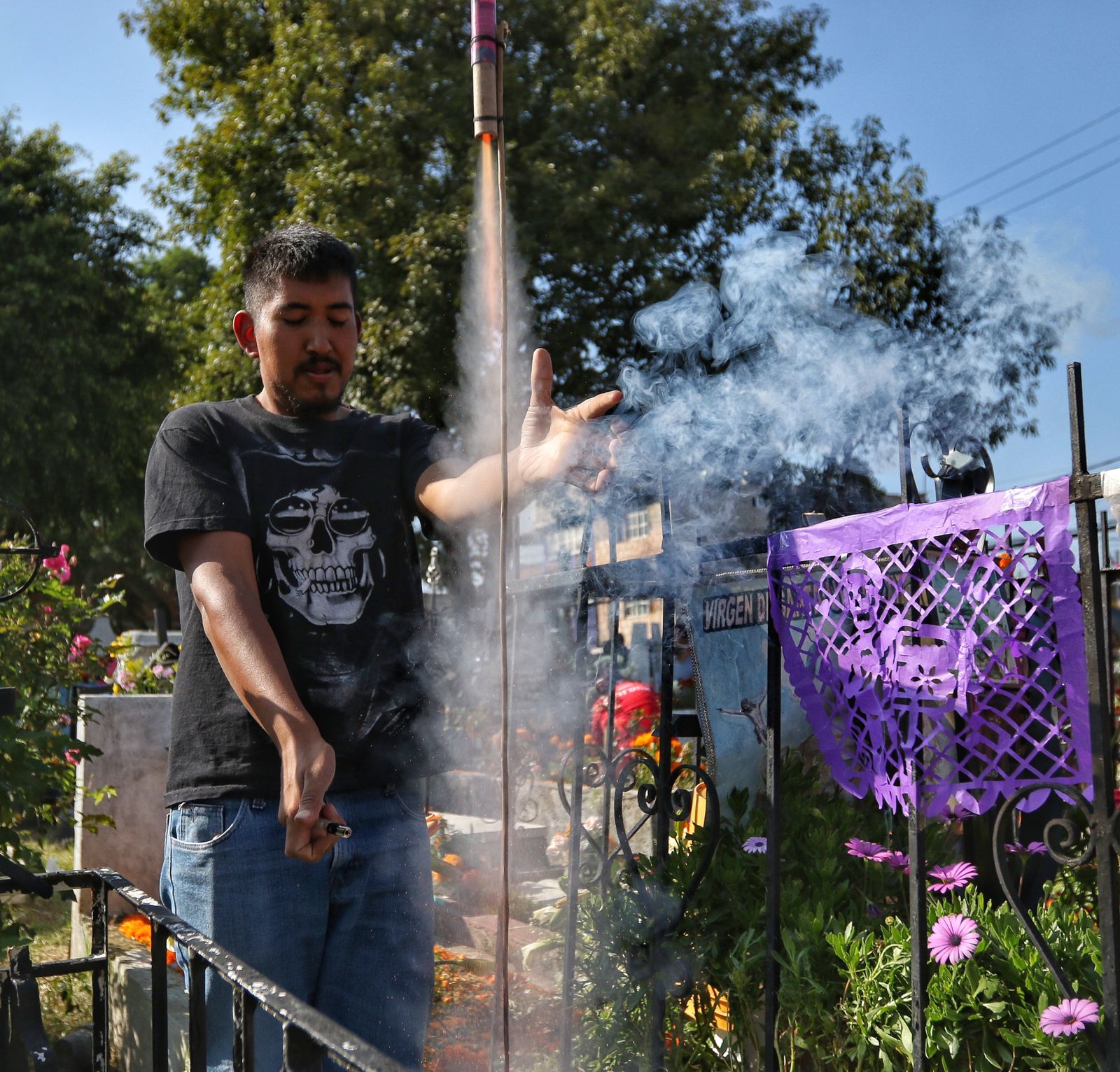 “Fueron dos años dolorosos”, comentó la señora Patricia Alcántar, quien lavaba la lápida de sus padres Daniel y Hermila: fallecieron hace mucho tiempo,