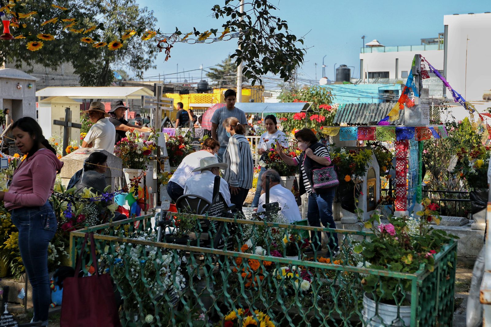 Tras dos largos años de la pandemia por Covid-19, familias de las alcaldías Xochimilco, Iztapalapa, Iztacalco y Coyoacán, regresaron a visitar las tumbas de sus difuntos en decenas de panteones de CDMX para darles una “manita de gato”.
