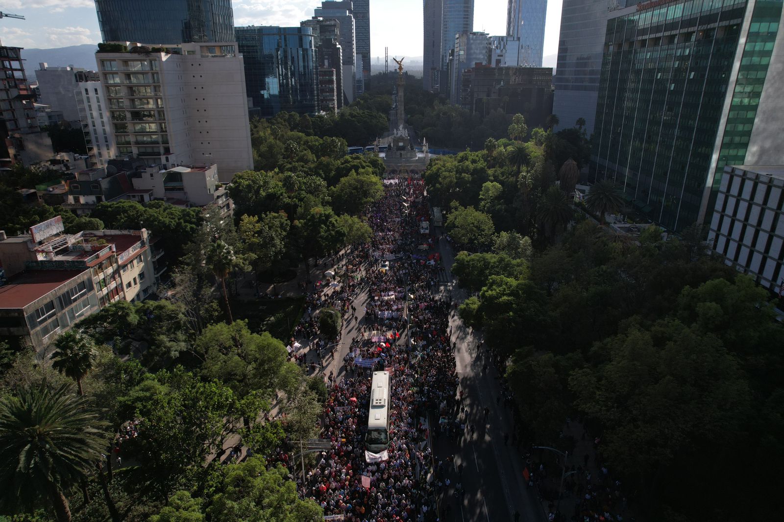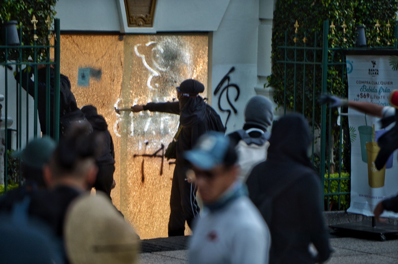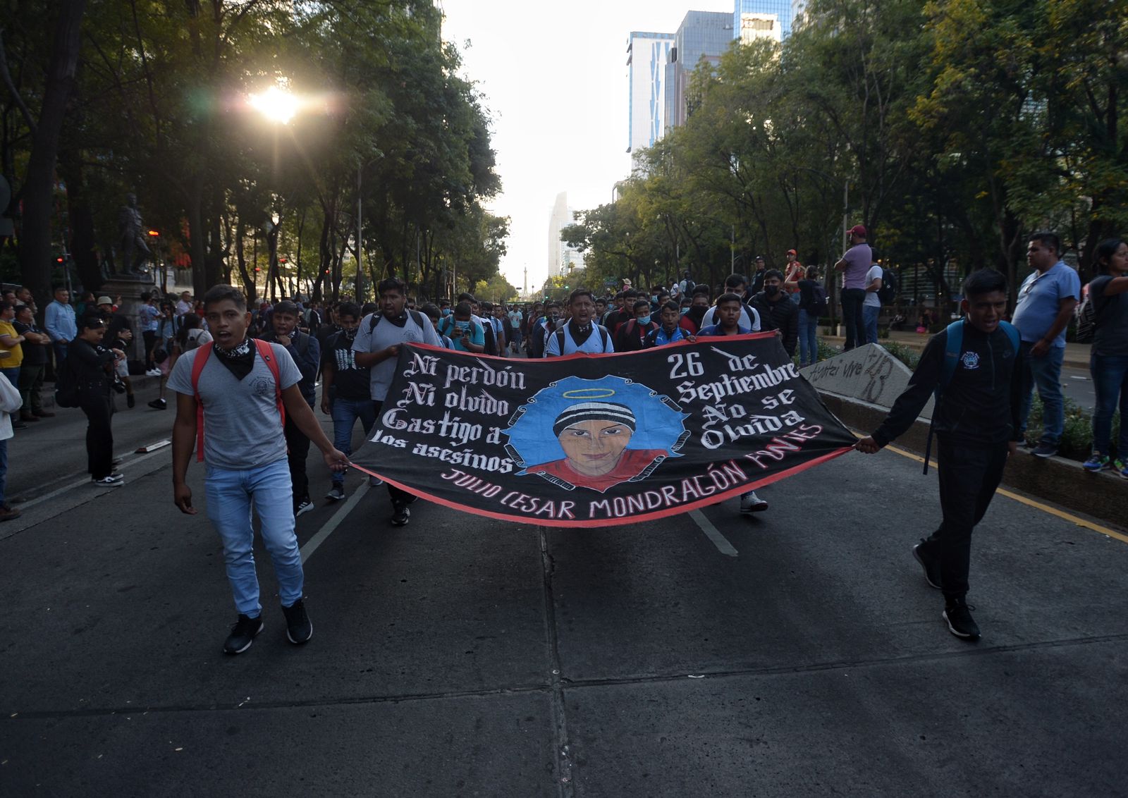 Por lo menos 5 mil personas marcharon en conmemoración por el noveno aniversario de la desaparición forzada de los 43 estudiantes de la Normal, Raúl Isidro Burgos de Ayotzinapa. Las vallas que cercaron palacio nacional contuvieron la embestida del contingente integrado en su mayoría por jóvenes de dicha institución, quienes llegaron a bordo de camiones procedentes del estado de Guerrero. Los protestantes incendiaron diversos objetos pero no provocaron daños mayores, sólo un grupo de unos 30 encapuchados provocaron destrozos en el Restaurante Sonora Grill, que se localiza sobre Avenida Reforma, colonia Tabacalera.