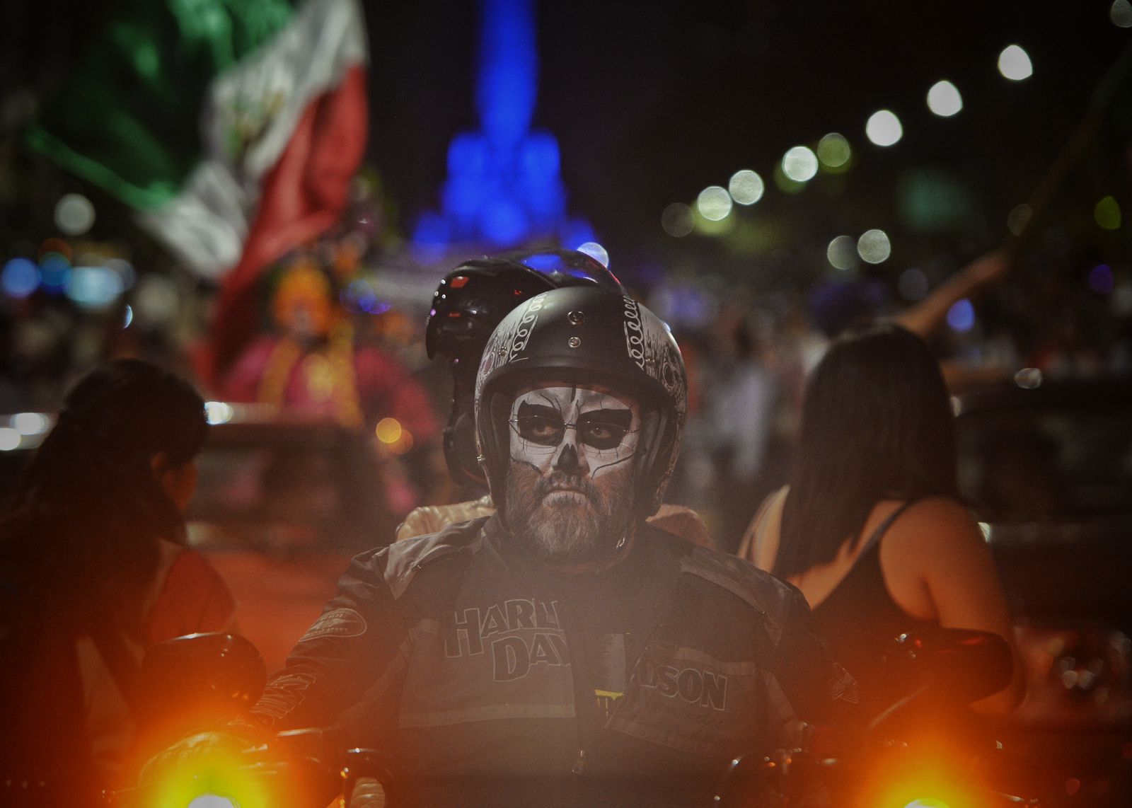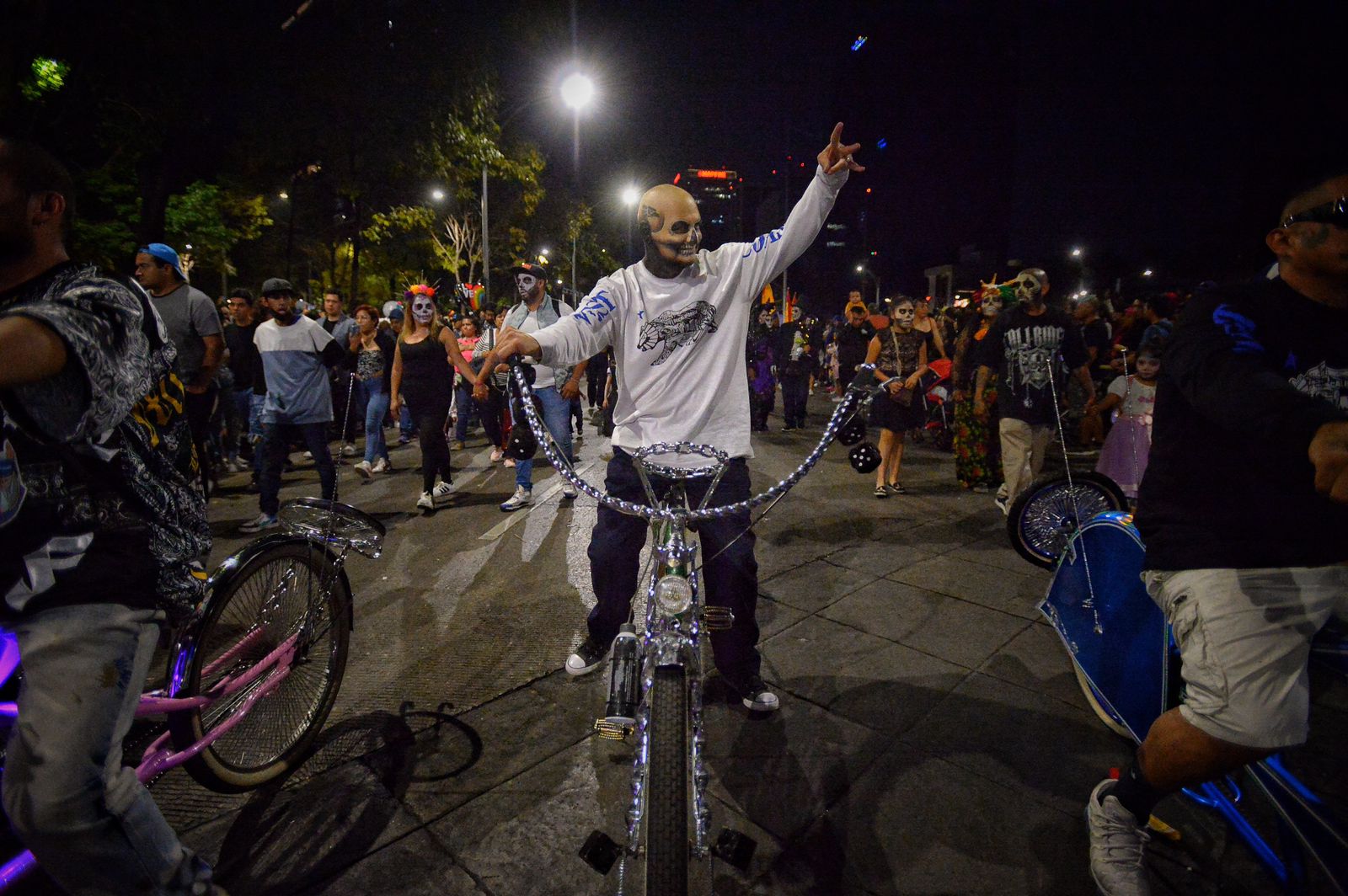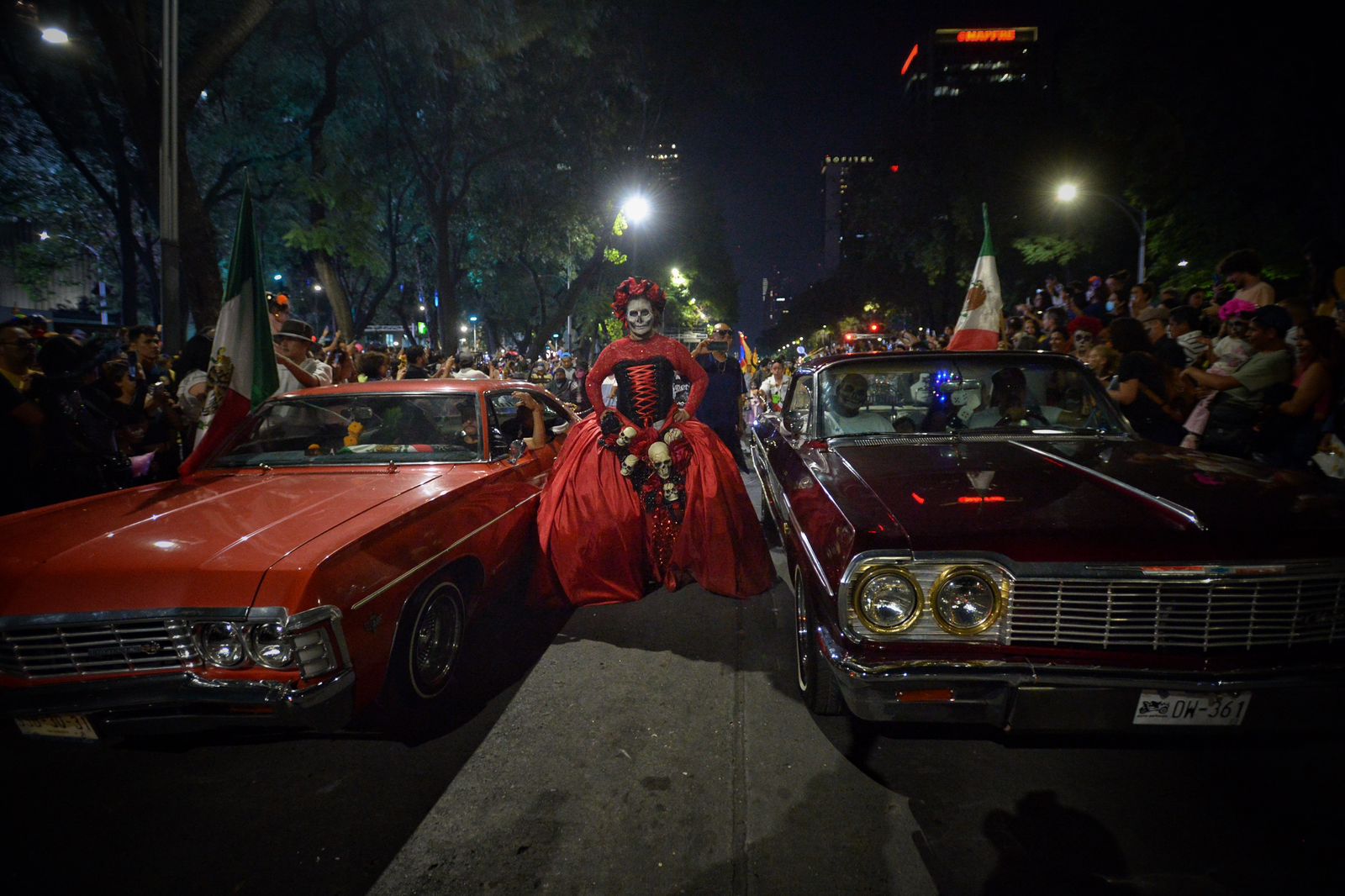 Calaveras vestidas de charros, escaramuzas, norteñas, trajes típicos mexicanos y alguna qué otra despistada, qué llevaba ropa vouyerista caminaban por Paseo de la Reforma, el punto de salida, la Victoria Alada, mejor conocida como el Ángel de la Independencia.