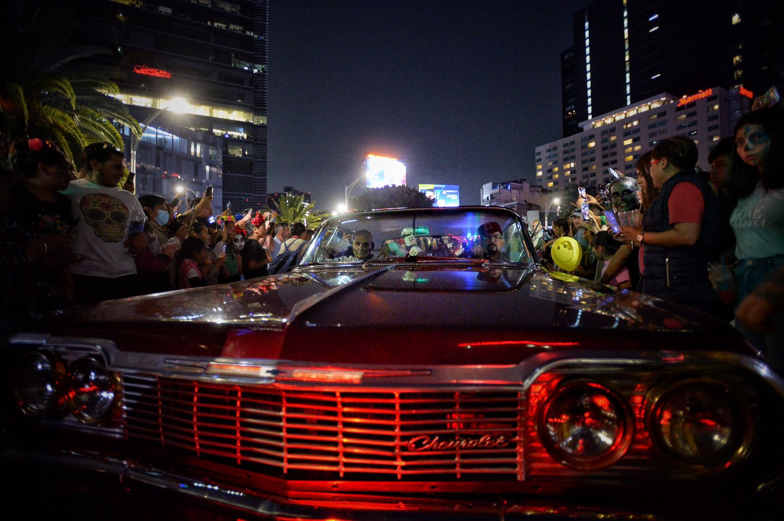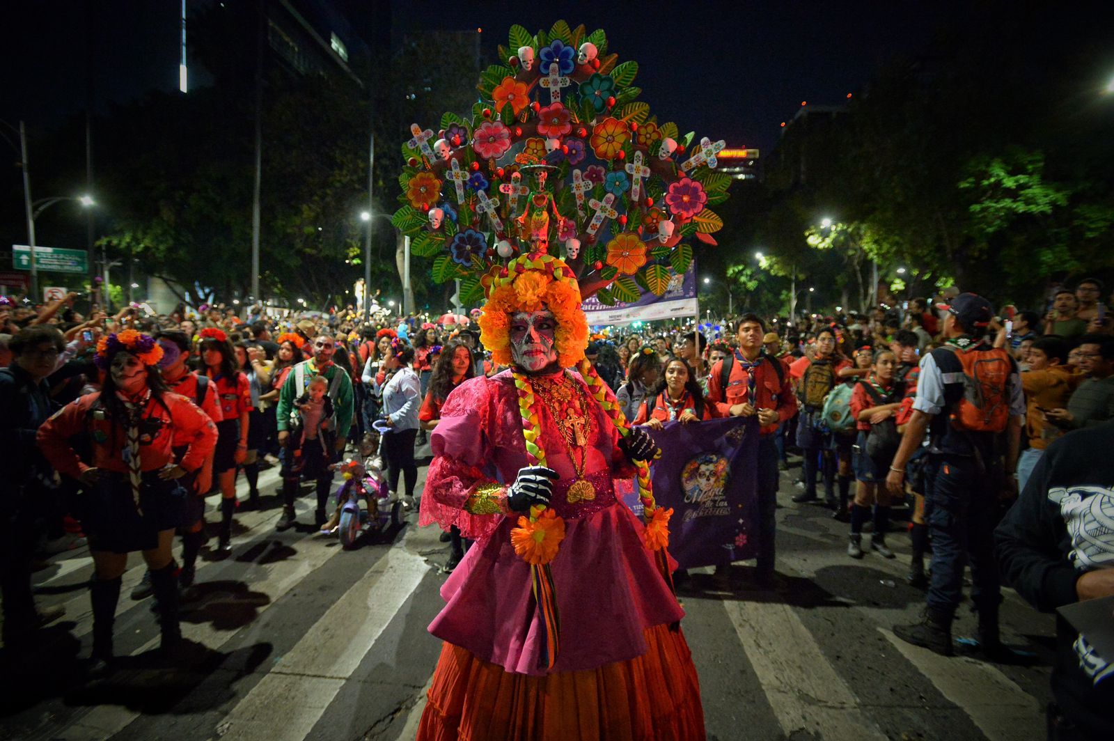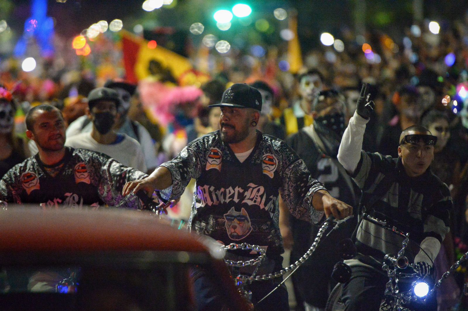 Calaveras vestidas de charros, escaramuzas, norteñas, trajes típicos mexicanos y alguna qué otra despistada, qué llevaba ropa vouyerista caminaban por Paseo de la Reforma, el punto de salida, la Victoria Alada, mejor conocida como el Ángel de la Independencia.