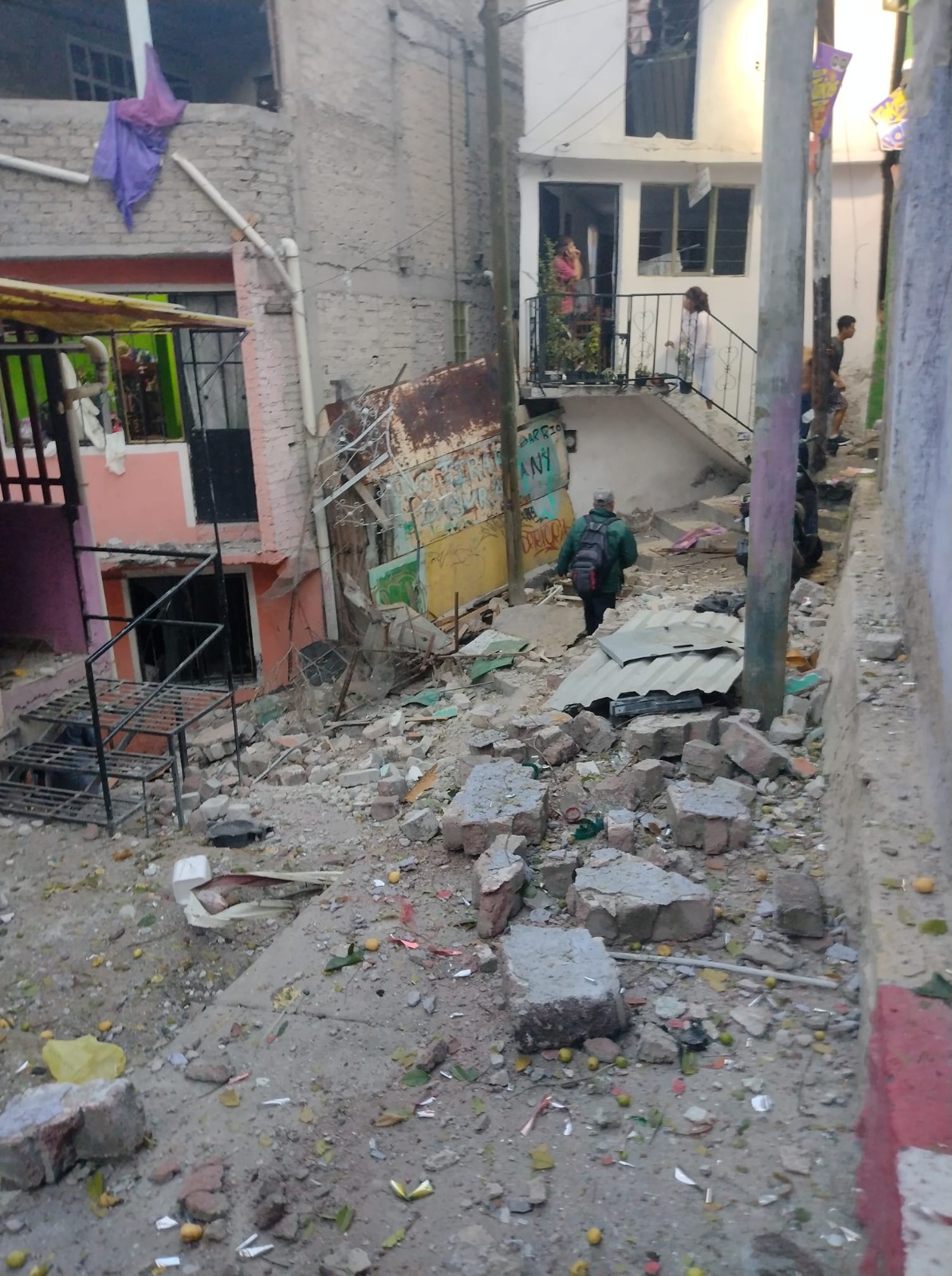 La Secretaría de Gestión Integral de Riesgos y Protección Civil indicó que, tras el estallido por acumulación de gas en la calle Huitzilopochitli Mz. 33 e Ilhuicamina en la colonia La Pastora, una losa se colapsó y provocó afectaciones en vidrios de 15 inmuebles aledaños.