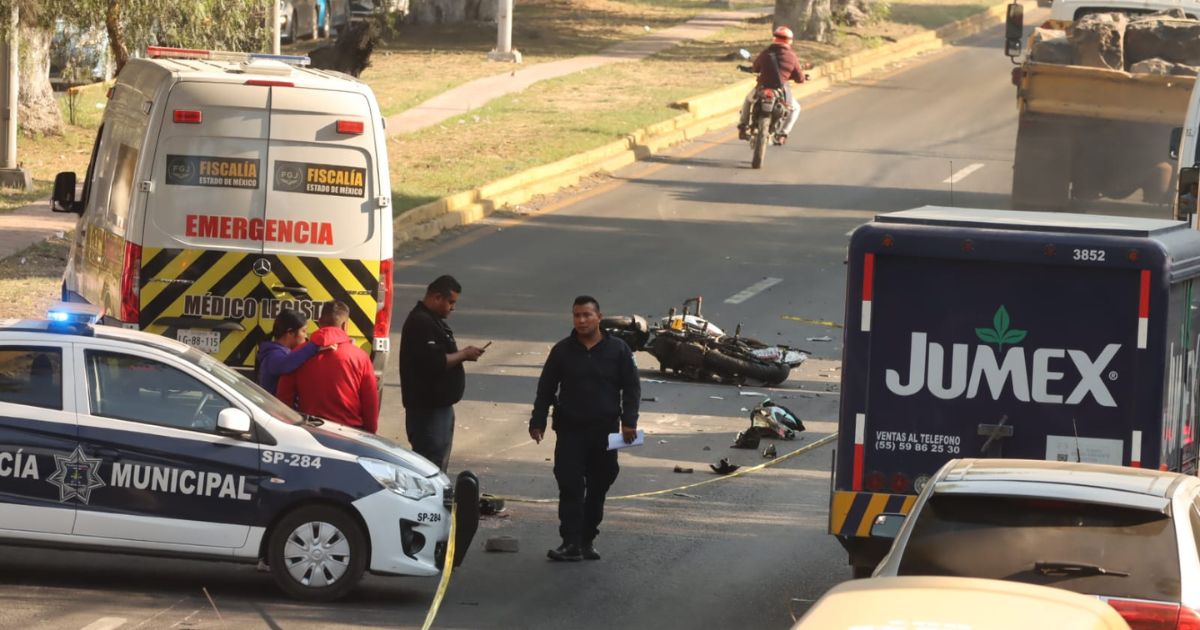 El motociclista perdió el control, cayó y un tráiler le pasó encima, en la México-Texcoco