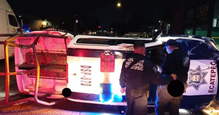 Vuelca patrulla de la policía municipal tras colisión en Tulpetlac