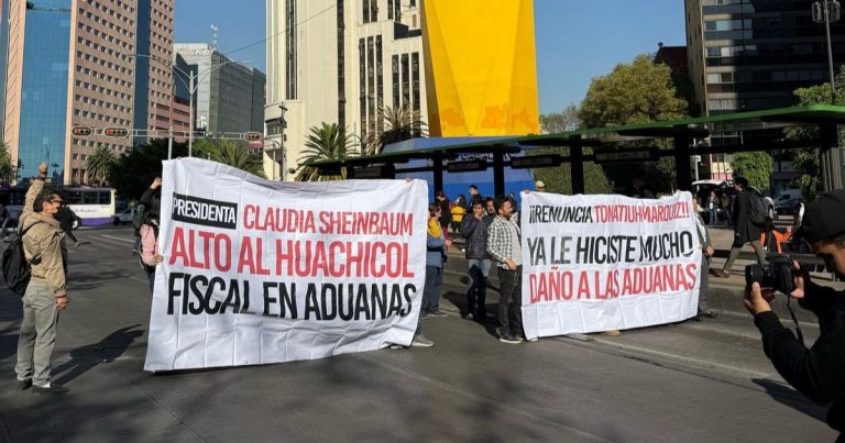 Visitas Los inconformes se manifestaron desde las 8:00 a.m., alterando el tránsito vehicular tras un supuesto fraude en aduanas DIEGO RAYA CIUDAD DE MÉXICO.- Alrededor de 50 personas pertenecientes a la Agencia Nacional de Aduanas de México (ANAM) bloquearon -desde las 8:00 am- el cruce de Paseo de la Reforma y Eje 1 Poniente, en … Sigue leyendo Bloqueo en Reforma por presunta venta de plazas en la ANAM