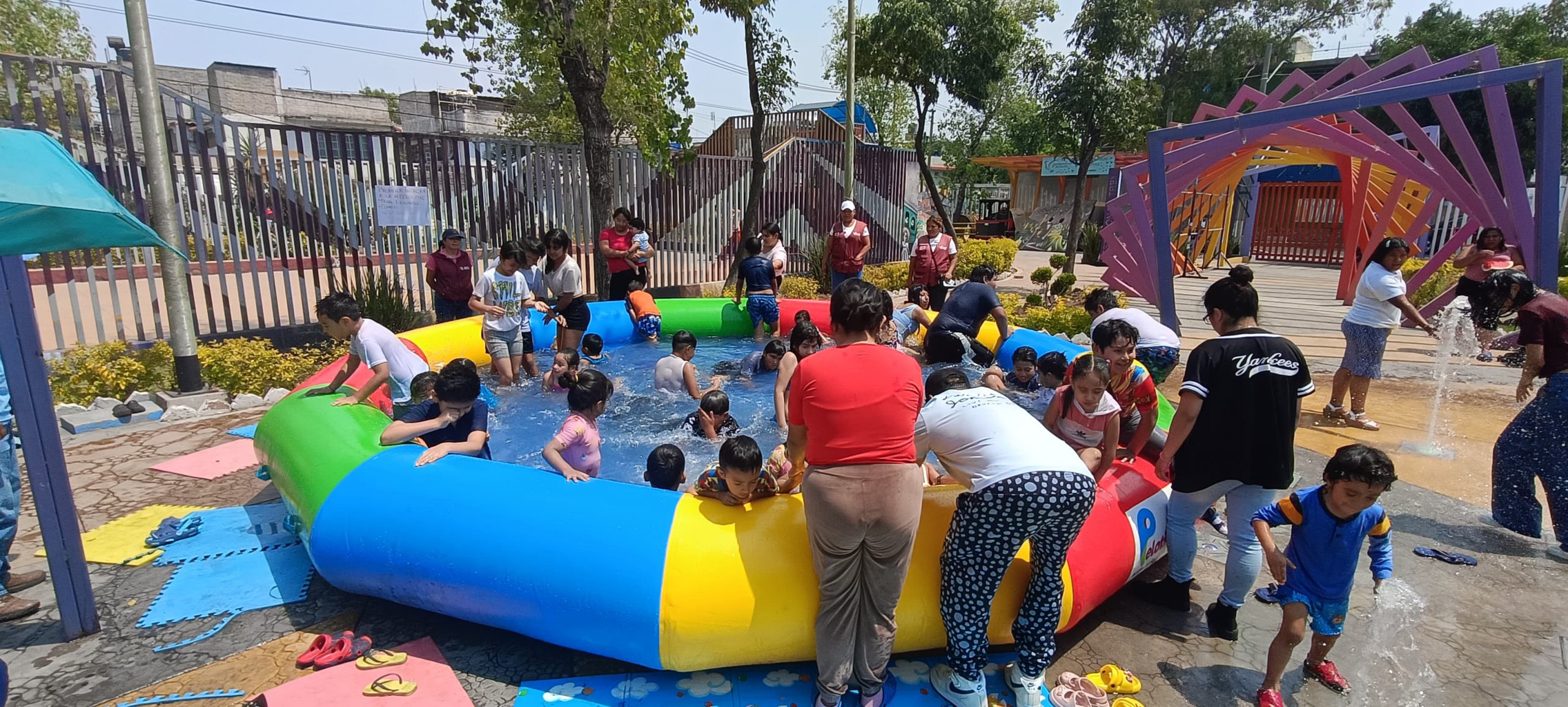 La Alcaldía Venustiano Carranza, encabezada por Evelyn Parra Álvarez, se convirtió en una opción para las niñas y niños que no salieron de la ciudad en estas vacaciones de Semana Santa ya que transformó sus espacios públicos en parques acuáticos en donde instalaron enormes inflables, albercas, cañones de espuma, entre otras atracciones.