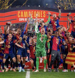 Sin embargo, este sábado 26 de abril cayó el segundo título y consumó otro éxito para el equipo de entrenador alemán, en sus pulsos directos con el Real Madrid de Carlo Ancelotti. En una final de Copa que, disputada en La Cartuja.