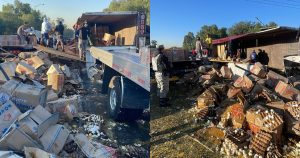 Decenas de automovilistas quedaron atrapados en largas filas mientras algunos peatones intentaban recuperar parte de la mercancía esparcida sobre el asfalto, aunque la mayoría de los huevos resultaron aplastados o inutilizables debido al impacto.