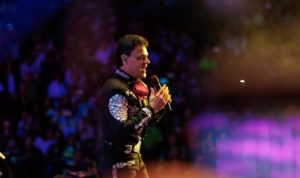 Previo a esta emotiva dedicatoria interpretó temas como “Mi forma de sentir”, “Bésame morenita”, “El siete mares” y un popurrí a José Alfredo Jiménez, además de cantar los temas “Si te vas” y “El Sirenito”, como un homenaje a Rigo Tovar, acompañado por los cantantes de Grupo Cañaveral.