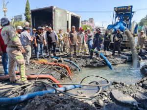 Con el arribo de Parra Álvarez a la zona afectada así como de cuadrillas de casi 100 personas de Protección Civil, Participación Ciudadana, Obras, Servicios Urbanos y Seguridad Ciudadana, la edil, inició los trabajos de desazolve y limpieza de coladeras en un perímetro de cuatro calles a la redonda.