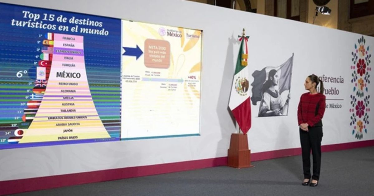 En la presentación, Rodríguez destacó que México se ubicó en 2024 como el sexto país más visitado del mundo, con 45 millones 38 mil 754 turistas internacionales, superando a destinos como Reino Unido, Alemania y Grecia. La meta, dijo, es incrementar esa cifra en tres millones para 2025, y escalar posiciones en el ranking global, el cual es dominado por Francia, España, Estados Unidos, Italia y Turquía.