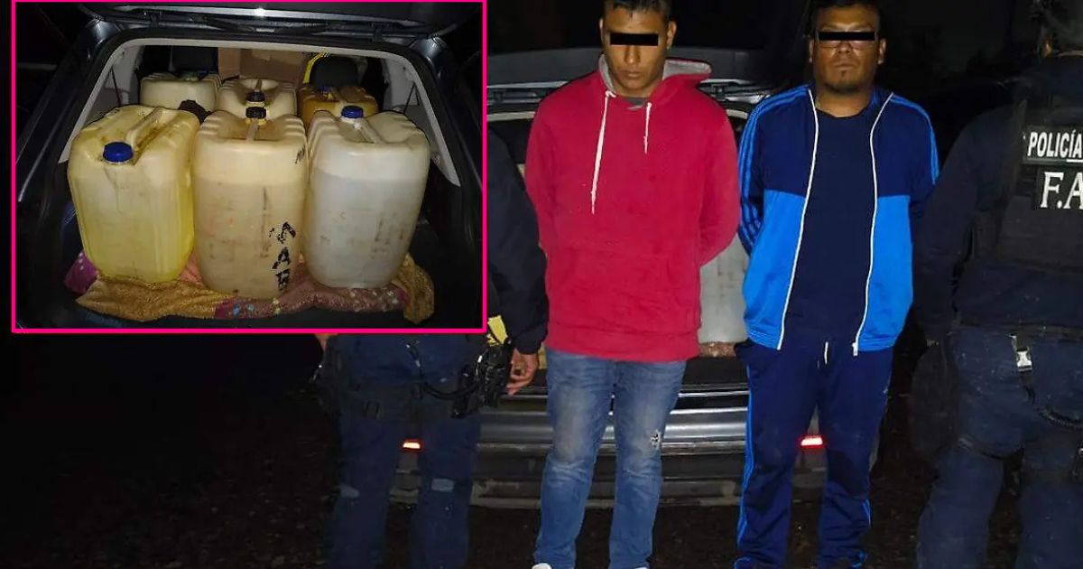 Los detenidos, identificados como Daniel “N” y Moisés “N”, de 37 y 25 años, no pudieron acreditar la procedencia legal del combustible, por lo que fueron puestos a disposición del Ministerio Público en Tlalnepantla.