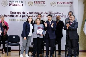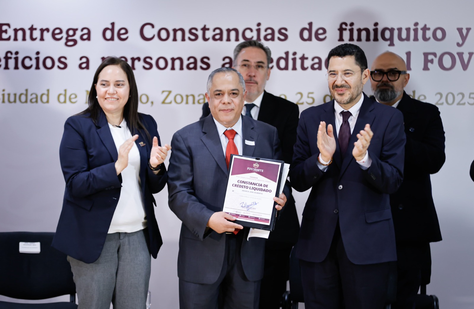 “¡Ya tenemos un camino para que las personas acreditadas de @FOVISSSTEmx tengan sus constancias de finiquito como las que entregamos el día de hoy! Llegaremos a las 400 mil personas beneficiadas con los programas de congelamiento de saldo, quitas y condonaciones. ¡Seguimos transformando al FOVISSSTE!”, compartió.