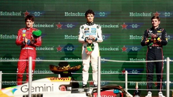 Piastri completó el 1-2 para McLaren, que fue más que superior, aplastó a la competencia con una ventaja de más de 17 segundos sobre el tercer lugar que fue el Ferrari de Charles Leclerc, que tuvo como escolta, pero fuera del podio al siete veces campeón del mundo, Lewis Hamilton, también piloto de la Scuderia de Maranello.
