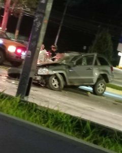La escena quedó marcada por los restos de una camioneta Jeep negra, completamente destrozada tras impactarse contra un objeto fijo a la altura del centro comercial Cosmopol.