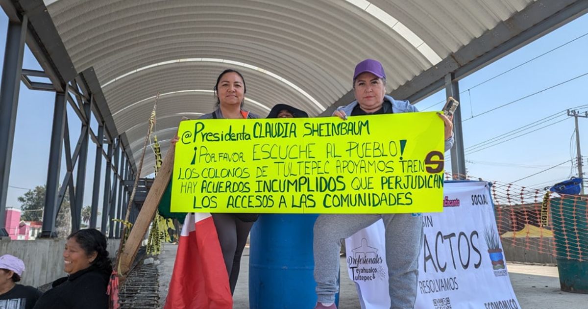 Habitantes de Teyahualco, en el municipio de Tultepec, mantienen bloqueados desde noviembre varios puntos del tramo ferroviario, en exigencia de obras de compensación que, aseguran, nunca llegaron pese a ser prometidas desde 2023.
