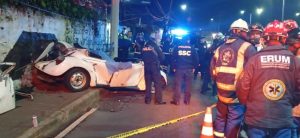 El fatal accidente automovilístico se registró alrededor de las 4:30 de la madrugada sobre la avenida Luis Cabrera, en la colonia Barrio San Francisco, donde quedó volcado el automóvil VW blanco, matrícula para discapacitado 54-GMU del estado de Guerrero, en cuyo interior quedaron prensados dos hombres y una mujer.