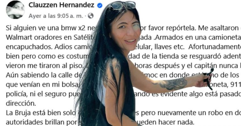 Visitas La periodista Clauzzen Hernández, voz reconocida de Reactor 105.7 FM, fue víctima de un violento robo armado en una plaza comercial de Tlalnepantla REDACCIÓN GRUPO CANTÓN La creciente inseguridad en el municipio de Tlalnepantla volvió a quedar expuesta luego de que Clauzzen Hernández, locutora de Reactor 105.7 FM, fuera víctima de un violento asalto … Sigue leyendo Asaltan a locutora y nadie responde