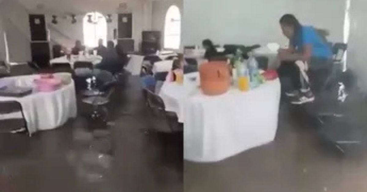 El nivel del agua rebasó los 30 centímetros dentro del inmueble, dejando a decenas de invitados atrapados, entre ellos niños, adultos mayores y mujeres embarazadas.