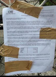 En una revisión periódica llevada a cabo el 28 de mayo, personal de la Comisión halló que sin la debida autorización, la instalación eléctrica del inmueble estaba conectada a la Red General de Distribución, sin un contrato de suministro vigente, ni un sistema de medición para el consumo; según refiere el escrito pegado con cinta canela en las afueras de la planta.