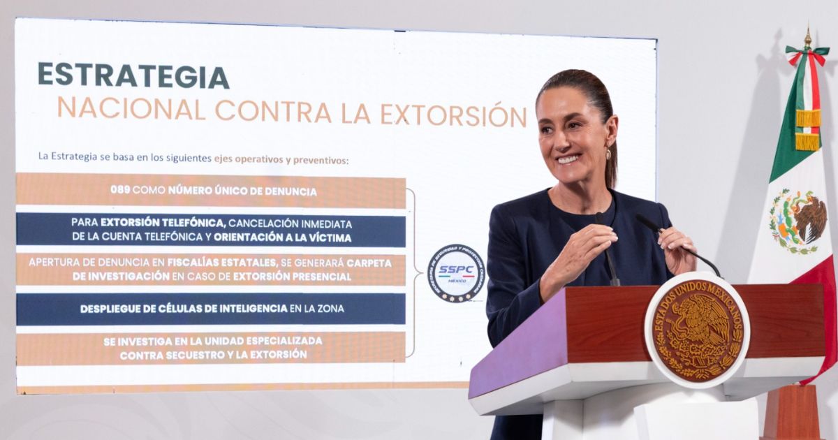 “Es un delito que aún no podemos disminuir, sigue aumentando (…) esta modificación a la ley que refuerza la estrategia ¿En qué consiste? Que ya no descanse en la víctima la denuncia. Hoy, quien denuncia, quien tiene que denunciar la extorsión, es la víctima poniendo en riesgo su vida. Entonces, le estamos quitando a la víctima ese peso. ¿Quién lo asume? El Estado mexicano. Se persigue de oficio”, declaró Sheinbaum.