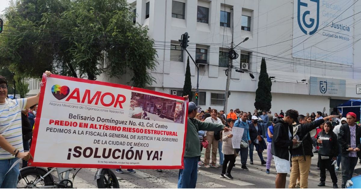 CIUDAD DE MÉXICO.- La presidenta de la Alianza Mexicana de Organizaciones Residentes (AMOR), Lorena García Alonso, encabezó un plantón frente a la Fiscalía General de Justicia de la Ciudad de México para exigir que se judicialicen las carpetas de investigación contra Claudia Angélica Morales Reyes, a quien acusan de invasión de predios, amenazas y explotación de migrantes.