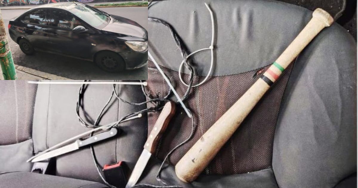 Tras darle alcance en calles de la colonia Citlalli, el conductor descendió del carro y se echó a correr, pero fue alcanzado por los mismos elementos que lograron rescatar a la mujer, además aseguraron en la cajuela dos cuchillos, un bate de madera, un rollo de cinta rafia, un par de placas de circulación del Estado de México y cinchos de plástico.