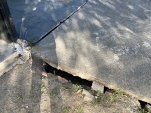 LA DEFORMACIÓN ES VISIBLE DEBIDO A QUE LA CARPETA ASFÁLTICA Y BANQUETAS DE LAS INMEDIACIONES LUCEN COMPLETAMENTE PANDEADAS