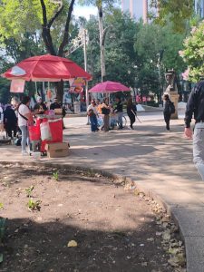 Durante un recorrido realizado por Diario BASTA! desde Metro Garibaldi hasta Chapultepec, se constató la presencia de puestos semifijos, muchos de ellos con lonas que portan el logo oficial de la alcaldía Cuauhtémoc y del Movimiento Antorchista Ciudad de México.