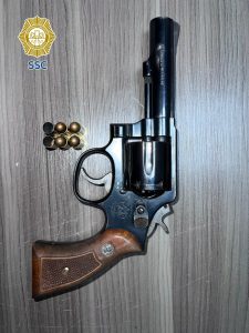 En apego al protocolo de actuación policial, le realizaron una revisión preventiva, tras la cual le aseguraron un arma de fuego corta y seis cartuchos útiles, de la que no poseía la documentación para la legal portación.