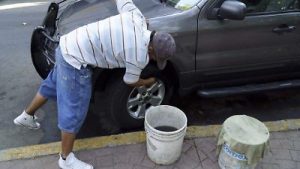 Acomodador de carros en una riña con un policía, señaló ser tolerado por el gobierno de Luis Mendoza, pese a operativos para retirarlos