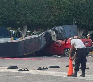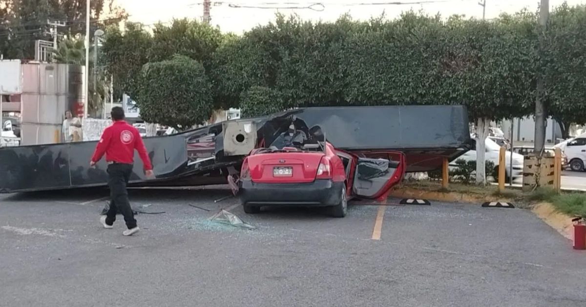 El aparatoso accidente ocurrió la tarde de ayer sobre la vía José López Portillo, donde, según versiones de testigos, el pesado anuncio colapsó de manera repentina a causa de los fuertes vientos y cayó directamente sobre un automóvil particular.