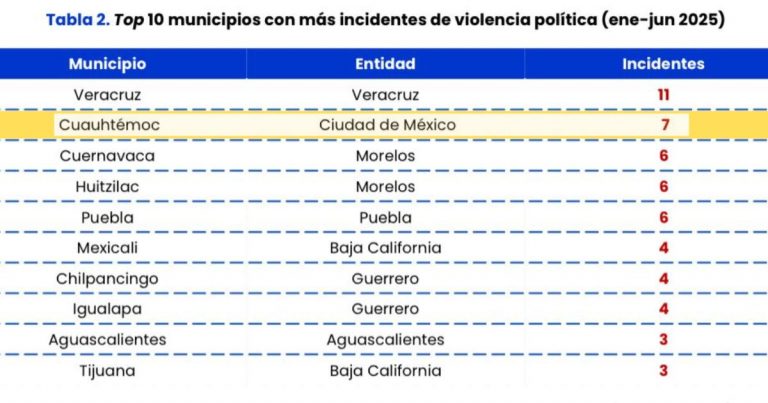 Visitas • Reporte de Integralia destaca agresiones contra la diputada federal María Teresa Ealy • Además, aparecen el senador Gerardo Fernández Noroña y la exalcaldesa Sandra Cuevas POR JUAN R. HERNÁNDEZ GRUPO CANTÓN Ciudad de México.- La alcaldía Cuauhtémoc, gobernada por Alessandra Rojo de la Vega, se ha convertido en uno de los puntos más … Sigue leyendo Es Cuauhtémoc un foco rojo en violencia política