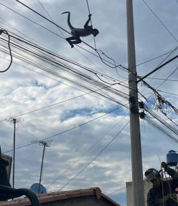 Bomberos y personal de rescate llegaron al sitio. La maniobra no fue sencilla: había que evitar que el animal se lastimara y que los rescatistas corrieran peligro con el tendido de cables. “Fue una operación de precisión, cada movimiento debía ser calculado”, relató el capitán Luis Hernández. Tras una hora de trabajo, el mono fue asegurado sin lesiones.