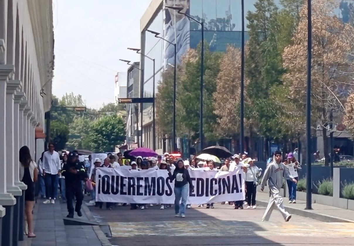 En Toluca pacientes, familiares y personal médico salieron a las calles para exigir el abasto urgente de medicamentos en clínicas y hospitales del IMSS