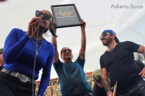 Lo que no esperaban sus seguidores, fue que se subieron al escenario y se echaran “Un Palomazo”, su público no cabía de la emoción y armaron un enorme slam, todo transcurrió en una sana convivencia, de cero violencia y mucho festejo; porque en ese momento la comisión de cultura del tianguis, subió a entregarles un reconocimiento por su 33 años de trayectoria; Tania Melo vocalista, Yocu Arellano su baterista y “El Apache” percusionista, levantaron con orgullo la placa que les entrego. El icónico ente cultural que está por cumplir su 45 aniversario.