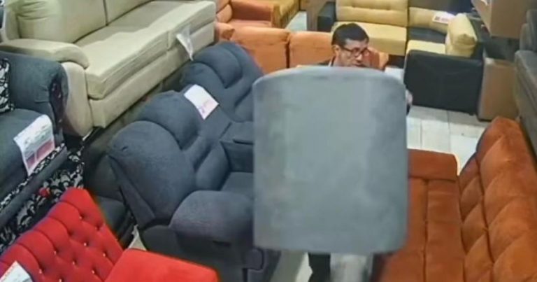Ladrón se roba un sillón en Naucalpan a plena luz del día y sin que nadie lo detenga