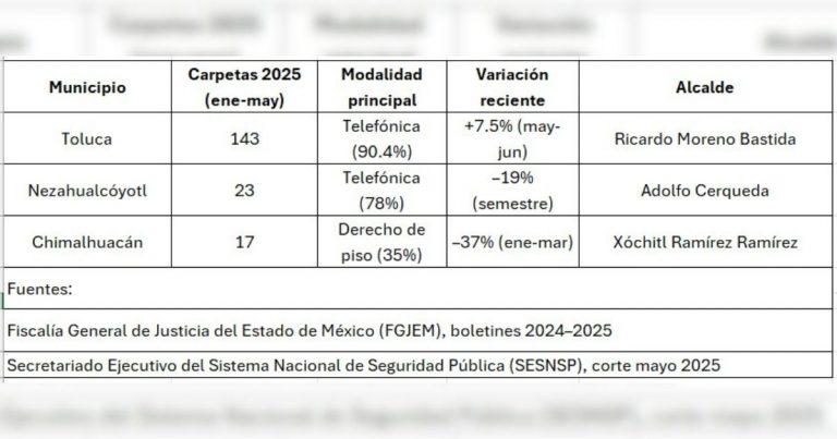 Extorsión crece y los alcaldes fallan en Toluca, Nezahualcóyotl y Chimalhuacán encabezan el delito