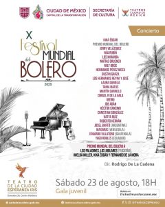 El escenario del Esperanza Iris reunirá a grandes figuras como José Carlos Díaz, Fernando de la Mora, Imelda Miller, Kika Edgar, Ricardo Caballero, Rosy Arango, Eric Ventura, Jerry Velázquez, Laureano Brizuela (Argentina), Benny Moré Jr. (Cuba), Alejandra Ávalos, Mía Rubín, Los Dandy’s, Los Miranda, Los Paladines y Los Juglares de Yucatán, quienes darán vida al bolero con interpretaciones memorables. El festival contará con la participación de artistas provenientes de más de siete países. Las enormes galas con música romántica se presentarán del 22 al 24 de agosto en el Teatro de la Ciudad Esperanza Iris.