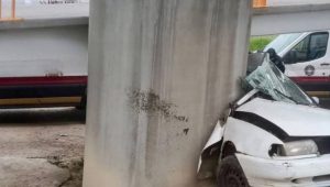 Un taxi Nissan Tsuru, utilizado como transporte público, perdió el control y terminó estrellándose contra la base de un puente peatonal a la altura de Jocotitlán. La fuerza del impacto destrozó por completo la parte delantera del vehículo y atrapó a los pasajeros, quienes no tuvieron oportunidad de sobrevivir.