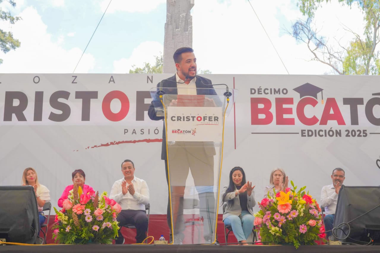 “Este año rompimos récord de Becatón, más de cuatro mil nuevas becarias y becarios, más de cuatro mil sueños hechos realidad este año, más de 30 mil jóvenes graduados. Jóvenes que hoy están transformando a sus familias, a su ciudad y a nuestra patria”, dijo Cristofer Lozano.