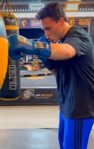 Al ex campeón del pugilismo se le observa en el video golpeando sacos, practicando con la pera, haciendo ejercicios de sombra, levantando mancuernas y realizando maniobras de su deporte.