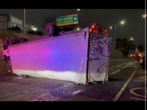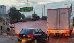La madrugada del jueves, la avenida Gustavo Baz en Tlalnepantla se convirtió en un embudo vial luego que un camión tipo torton, cargado con cajas de impresoras, per-diera el control y cayera desde una vialidad elevada, quedando volcado sobre los carriles de la José López Portillo con dirección al Viaducto Bicentenario.