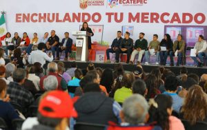 Azucena Cisneros Coss, presidenta municipal de Ecatepec, puso en marcha el programa “Enchulando tu Mercado”, que consiste en la entrega de vales de material para mantenimiento de infraestructura de 91 centros de abasto, en una primera etapa, lo que beneficiará de manera directa a más de 10 mil locatarios.