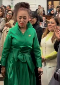 Ciudad de México.- Contrario al discurso de austeridad pregonado por la llamada “Cuarta Transformación”, la diputada local del Partido Verde, Rebeca Peralta, lució en una reciente ceremonia una vestimenta valuada en más de 40 mil pesos.